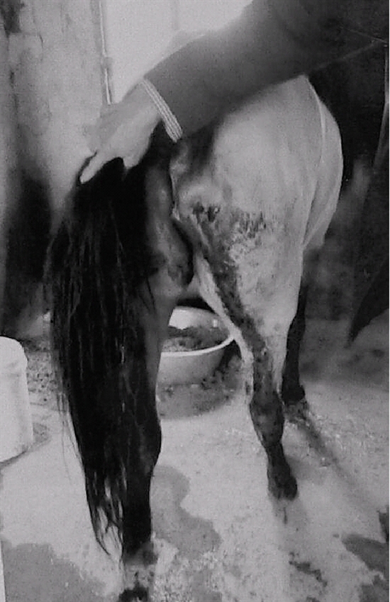 交警很快赶到现场拍照取证,马的大腿和屁股血迹斑斑,老吴落地时头部受伤。